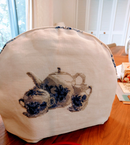 そして、こちらは美里さんデザインオリジナルティーコゼ。ロイヤルコペンハーゲンの青が素敵♪ 思わずうっとり♪